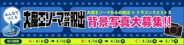 また本日併せて、「大魔王ゾーマからの脱出」の舞台が、オンラインRPG「ドラゴンクエストX」の冒険の舞台でもある「アストルティア」であることを発表させていただきます。さらに4月6日(金)正午12時より「ドラゴンクエストX」内で撮影した写真を募集する「大魔王ゾーマからの脱出×ドラゴンクエストX みんなでつくる『大魔王ゾーマからの脱出』」を5月7日(月)まで開催します。
