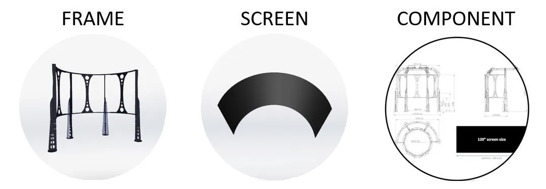 シームレススクリーンで180度の視界を見回し圧倒的な没入感と映像を楽しめる性能はそのままに、予算と用途に合わせたメインフレームの種類を選択できる商品展開を行っております。