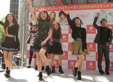 このイベントには、『TiMO』をプロデュースした番組MCの元AKB48 高城亜樹、モノマネシンガーの青木隆治、モノマネメイクのざわちんが登場。街行く人も「何が始まるの?」と興味津々の中、『TiiiMO』が登場!ビートの効いたデビュー曲「TiARY Night」でキレのいいダンス、高い歌唱力を披露し会場は大盛り上がり!