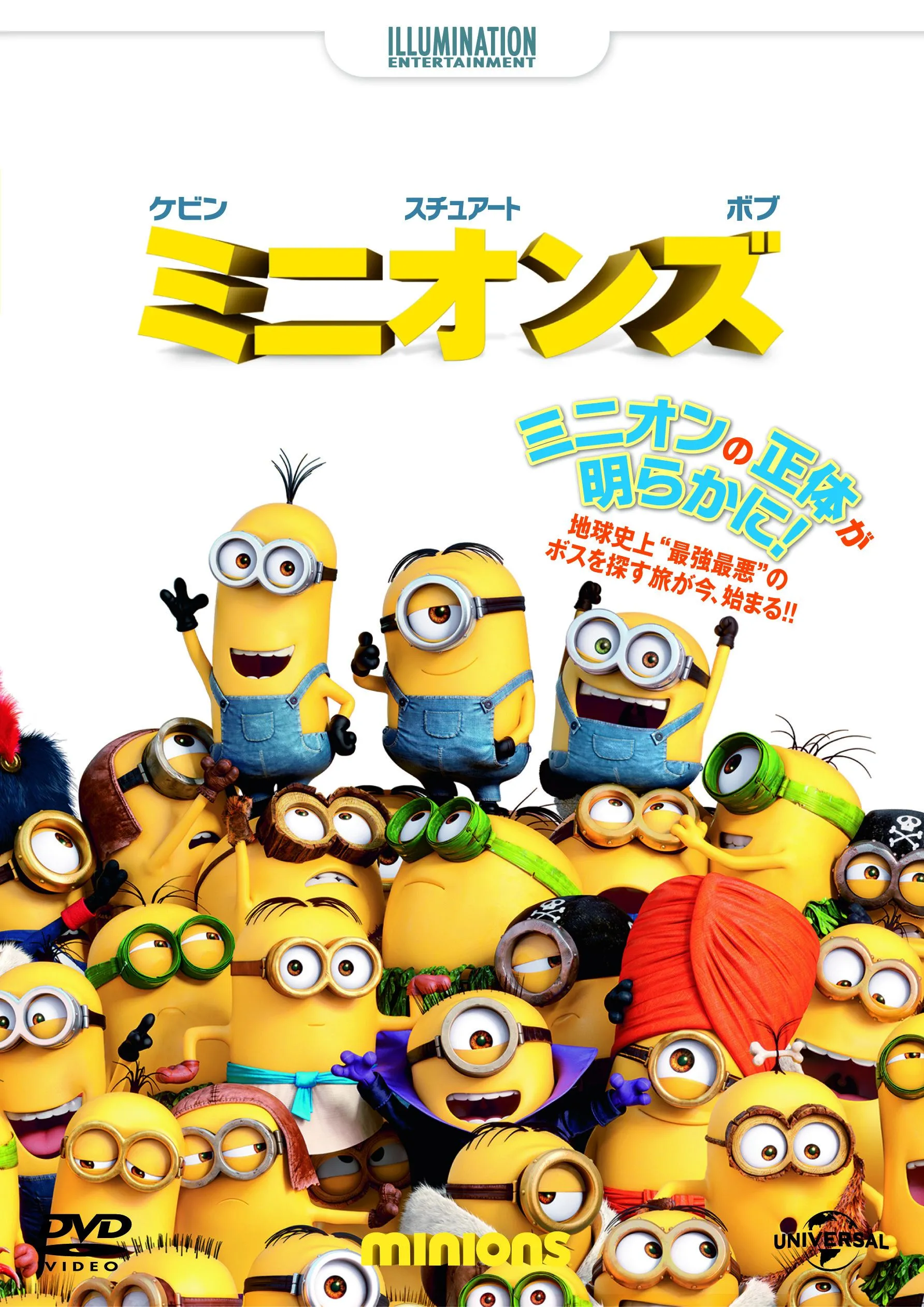 2015 年 No.1 ハリウッド・アニメ映画! ミニオンの正体が明らかに!~どのようにして、彼らは怪盗グルーの仲間になったのか!? 地球史上“最強最悪”のボスを探す旅が今、始まる!!黄色い謎の生物ミニオンは、人類が誕生する遥か昔 から存在した!? 彼らの生きがいは、その時代の最強で最悪なボスの仲間になること。しかし、そのボスたちの 命はなぜか長続きしない。いつしかそんなボスはいなくなり、ミニオンたちは生きる目的を失いつつあった。ミニオ ンたちの滅亡の危機が迫る 1968 年(怪盗グルーに出会うまであと 42 年!)、3 人のミニオン-ケビン、ス チュアート、ボブが仲間たちを救うべく立ち上がった。