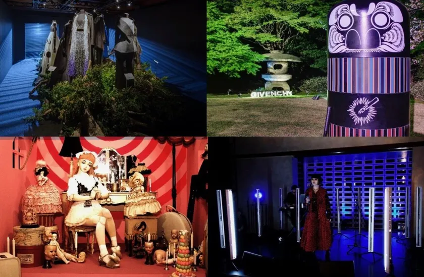 最初にジバンシィの4Gエンブレムの灯篭で彩られたアプローチや、満開の桜で飾られたロビーがゲストを迎えました。