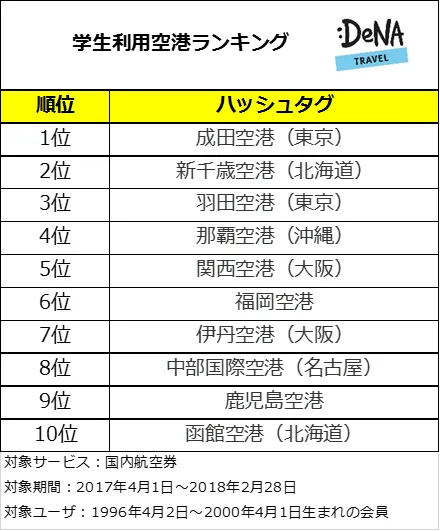 学生利用空港ランキングにランクインしている都市は、名古屋と鹿児島を除きすべてが「人気ハッシュタグランキング」にランクインしています。学生を中心とした多くの若年層は、旅行先での写真をハッシュタグを利用してInstagramに投稿し楽しんでいるようです。