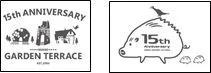 15周年を記念して、記念ロゴマークを2種類作成しました。六甲ガーデンテラス内の三施設(自然体感展望台 六甲枝垂れ、見晴らしの塔、ショップ「ホルティ」)と、うりぼーをそれぞれモチーフにしています。