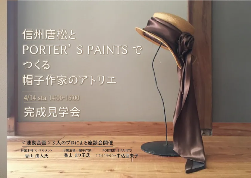 「信州唐松とPORTER’S PAINTSでつくる帽子作家のアトリエ」 完成見学会を川崎で4/14開催 ~「素材と色の選び方、使い方について」の座談会を実施~