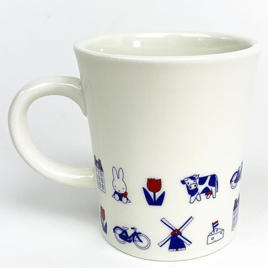 まずは、ミッフィー生誕65周年の今年、続々と出ている新商品のうちの一つであるダッチモチーフのマグです。オランダを連想させる風車やチューリップなど、かわいいデザインが下半分に描かれています。65周年を記念するロゴも入っているので、記念グッズとしてもぜひゲットしてくださいね♪