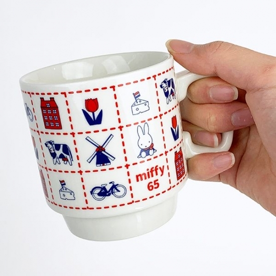 こちらも65周年記念デザインです。ダッチモチーフが前面に散らされていて、カラフル♪しかもこちらは、同じタイプのマグを重ねられる、スタッキングマグです。収納場所を取らないのは嬉しいですね~。