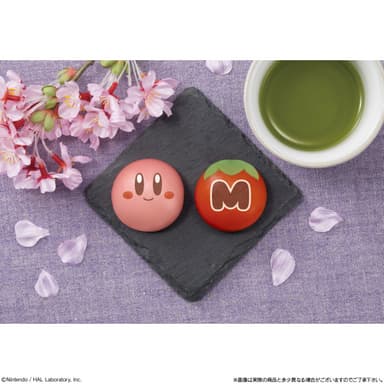 もちもちっとした食感と中に入ったクリームの味わいがマッチした一品で、カービィは「カスタード味クリーム」、マキシムトマトは「チョコ味クリーム」と、お子様にも食べやすい味を採用しました。また、カービィのほっぺやマキシムトマトのヘタは、和菓子の“練り切り”で再現しています。