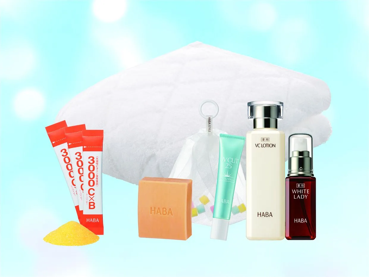 『夏の美白セット』は、「薬用VCローション」、「薬用ホワイトレディ」の美白スキンケアアイテムに加え、透明美肌を守る日やけ止め「UVカット25」、内側からケアするビタミンCサプリメント「3000C×B」など汗や冷房などでダメージを受けがちな夏の肌に対応。この時期にハーバーがおすすめするアイテムを取り揃えました。定番スキンケア2品、柑橘系のすっきりした香りの石けん、モコモコに泡立てられる「泡立て職人II」、ビタミンCサプリメントで夏の肌ダメージを、トータルでケアします。さらに吸水性抜群の今治ブランドの長尺タオルがついたお得なセットです。