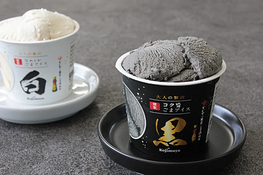 結果、出来上がった「ごま」を活かした大人向けの“カラダ”にも美味しいアイス『謹製 コク旨ごまアイス 黒』『謹製 なめらかごまアイス 白』を販売いたします。