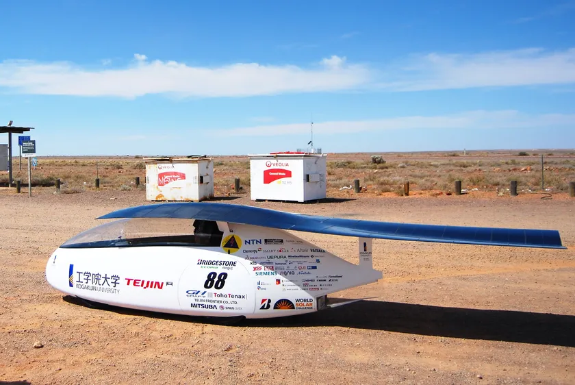 出展する工学院大学ソーラーチームの車両「Wing」