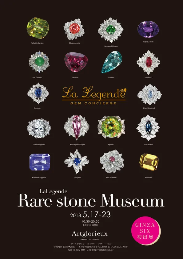 ジュエリーブランド「La Legende」(ヨミ:ラ・レジョン、運営:岡野大陽堂株式会社、代表取締役:岡野 仁志)は、2018年5月17日(木)~23日(水)の1週間、GINZA SIX5階のギャラリー、アールグロリュー ギャラリーオブトーキョーで「Rare Stone Museum」を開催いたします。