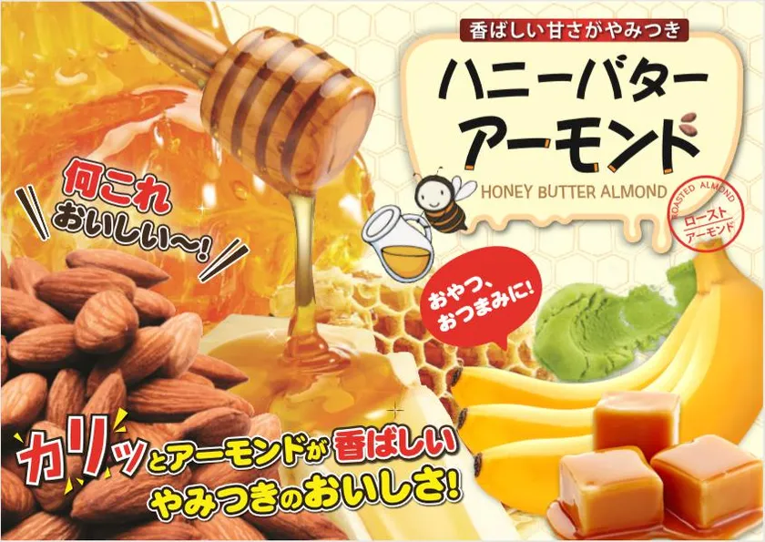 アーモンドに、甘くて香ばしい濃厚キャラメル、はちみつ&バターをたっぷりからめて仕上げました。https://www.atpress.ne.jp/releases/154393/img_154393_3.jpg