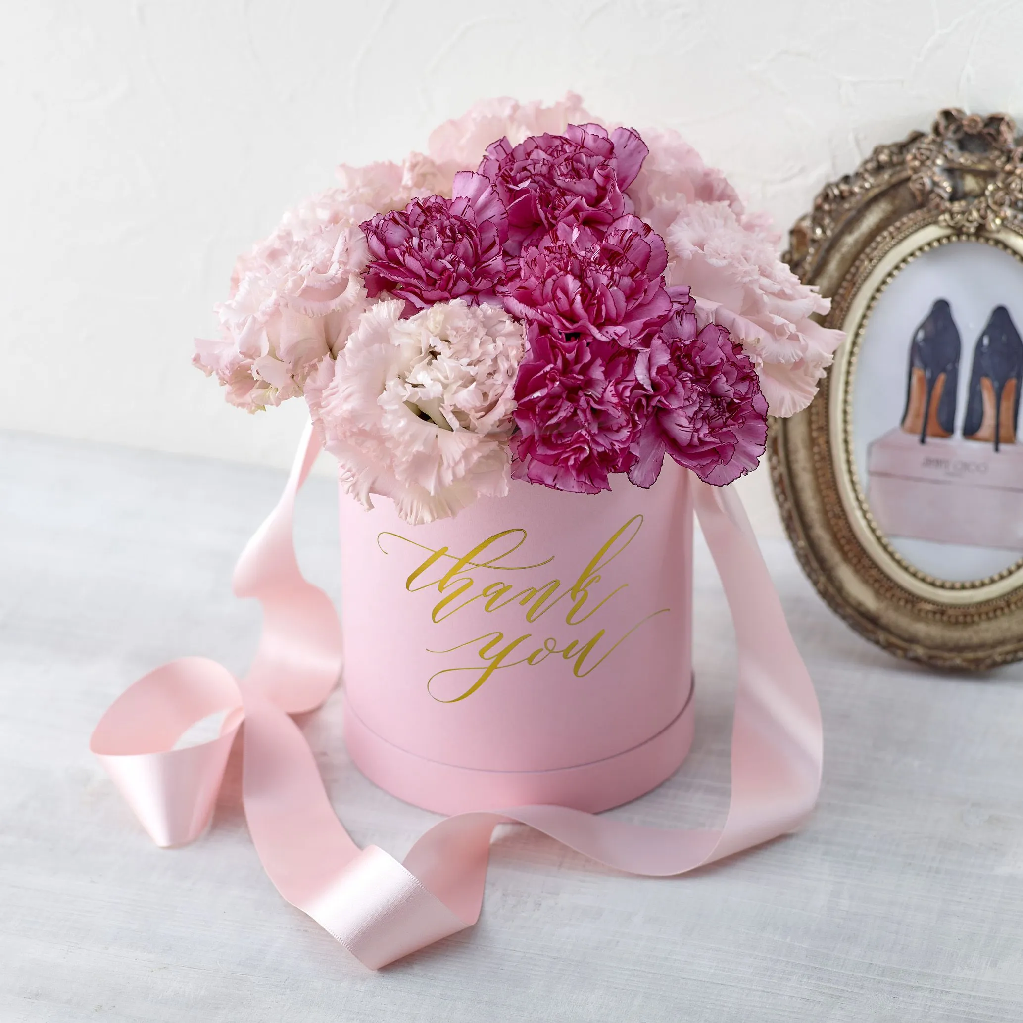 「Thank you」のメッセージ入りで、箱、リボンともにピンクになります。