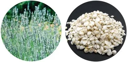 (左から)ラベンダー、ハトムギ