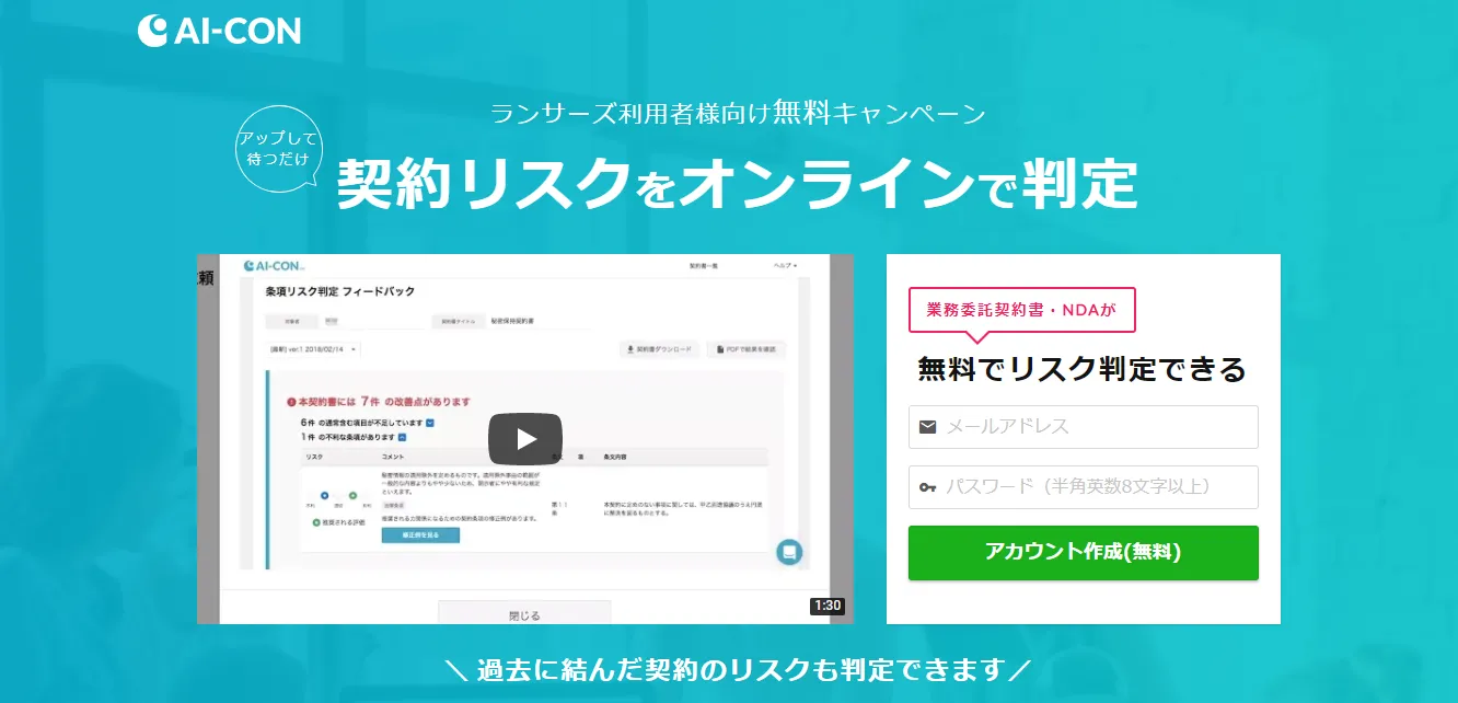 業界初 スタートアップ・フリーランス向けAIによる契約リスク判定サービス「AI-CON」を期間限定で無償提供
