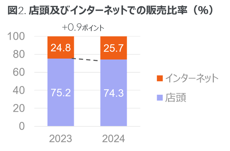 ・販売チャネル別では、店頭での販売比率が減少した一方で、インターネットでの販売が上昇する結果となった。