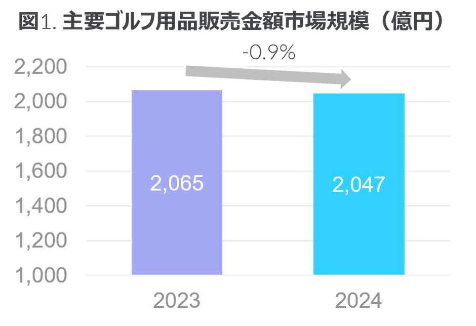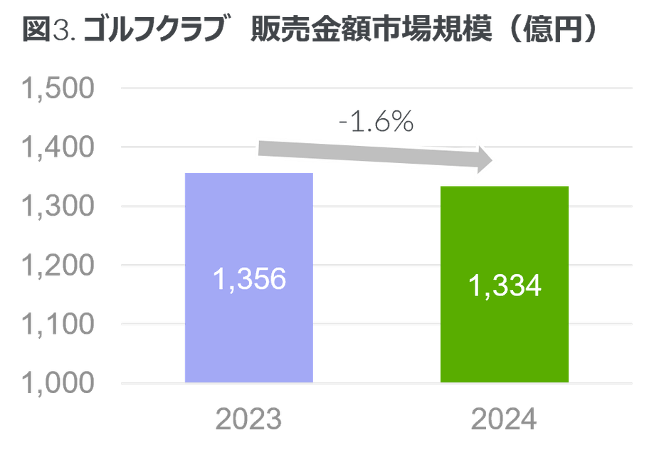 2024年はここ数年続いている物価の上昇に加え、猛暑日や降水量の増加等によるゴルフ場における入場者数の減少が影響することでゴルフ用品全体の市場規模が縮小することが懸念された。
