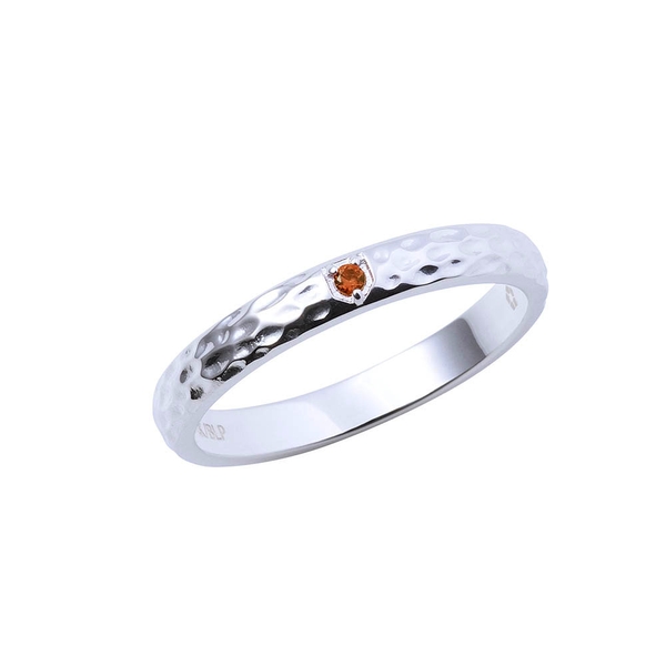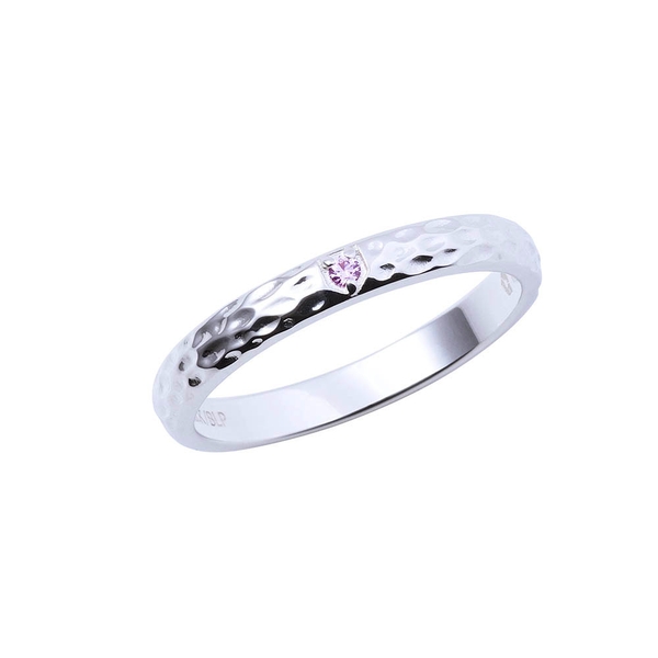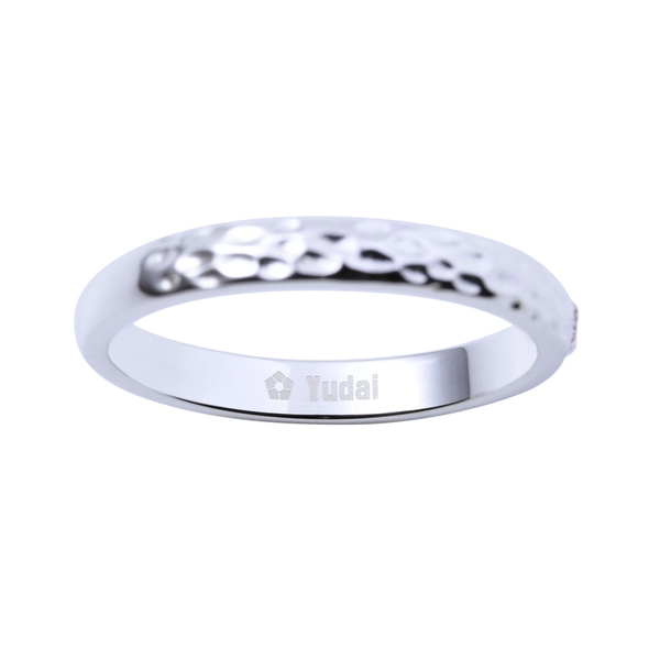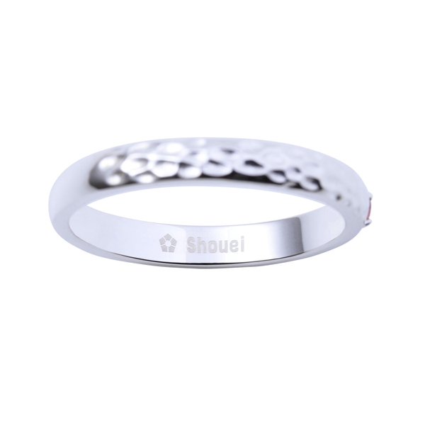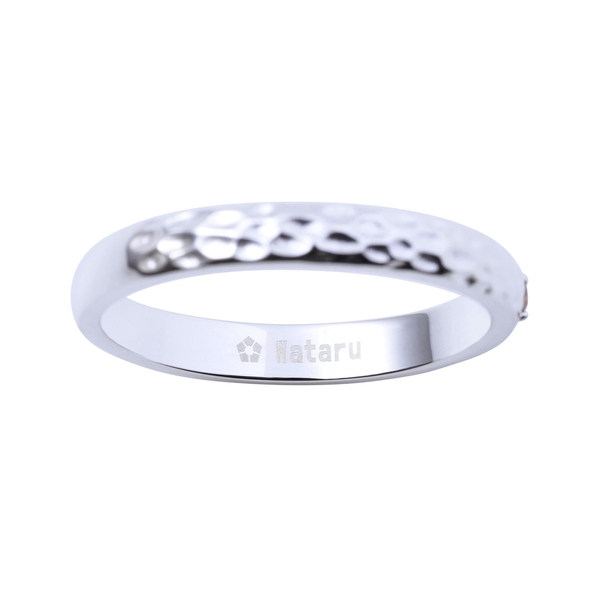 甲丸リングに槌目加工を施し、イメージカラーストーンをセット。作品の世界観をデザインに取り込みました。