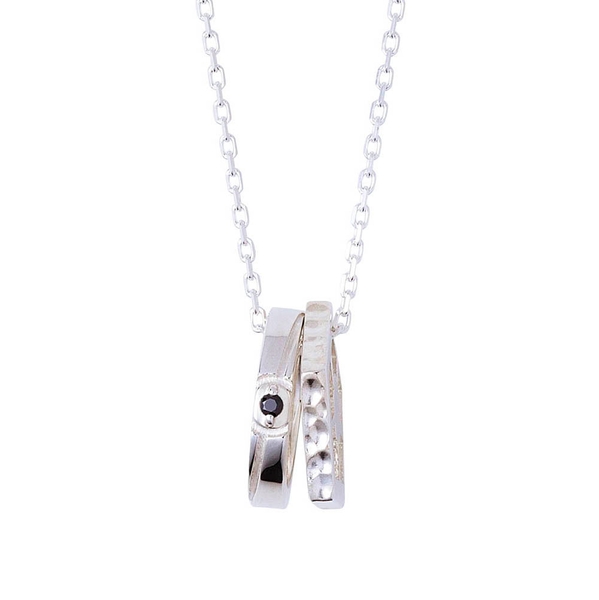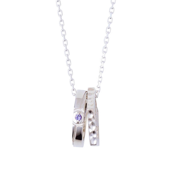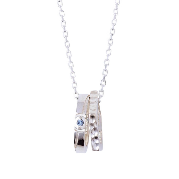 もう一方は青い監獄をイメージした五角形リングに槌目加工を施した二連ネックレスです。