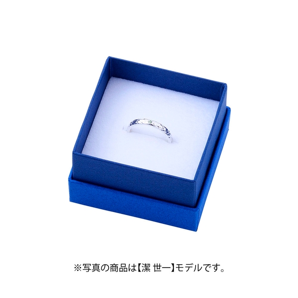 内側に青い監獄と名前を刻印。シンプルで日常使いしやすいリングです。