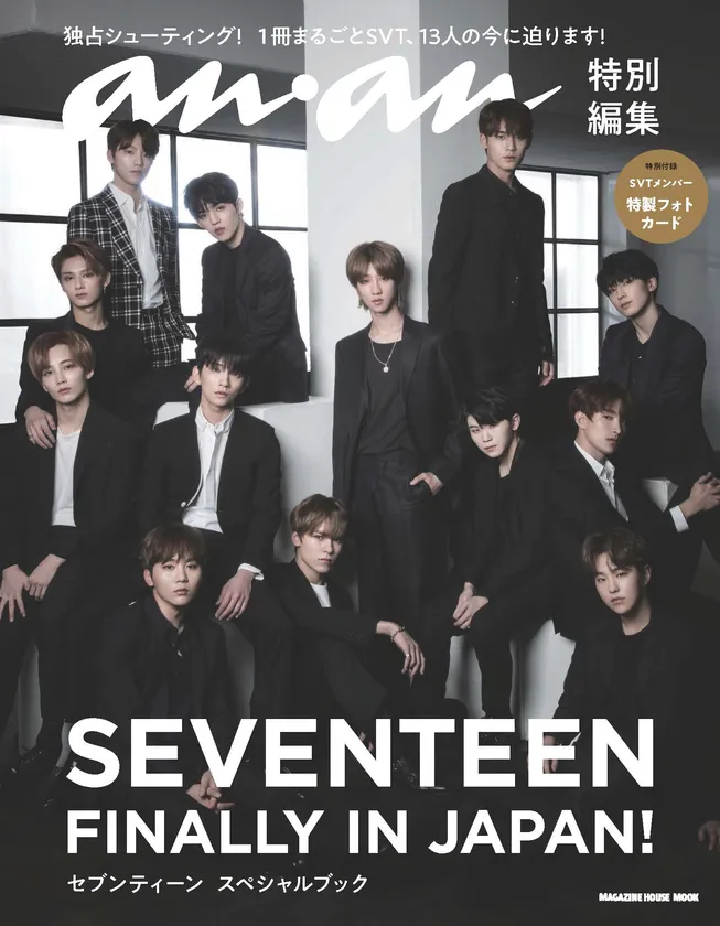 遂に日本デビュー! K-POPの超人気グループSEVENTEEN デビュー記念スペシャルムック anan特別編集 「SEVENTEEN FINALLY IN JAPAN! セブンティーン スペシャルブック」 2018年5月30日(水)発売 ~綴込み付録で16種類のフォトカードも~