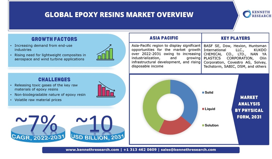 リサーチ・ネスターの一部門であるケネス・リサーチは最近、「エポキシ樹脂市場:グローバル需要分析と機会見通し2031」と題する調査レポートを発表し、エポキシ樹脂の詳細な概要を、タイプ別、物理的形態、用途別、エンドユーザー別、および地域別に市場セグメンテーションの観点から提供しました。