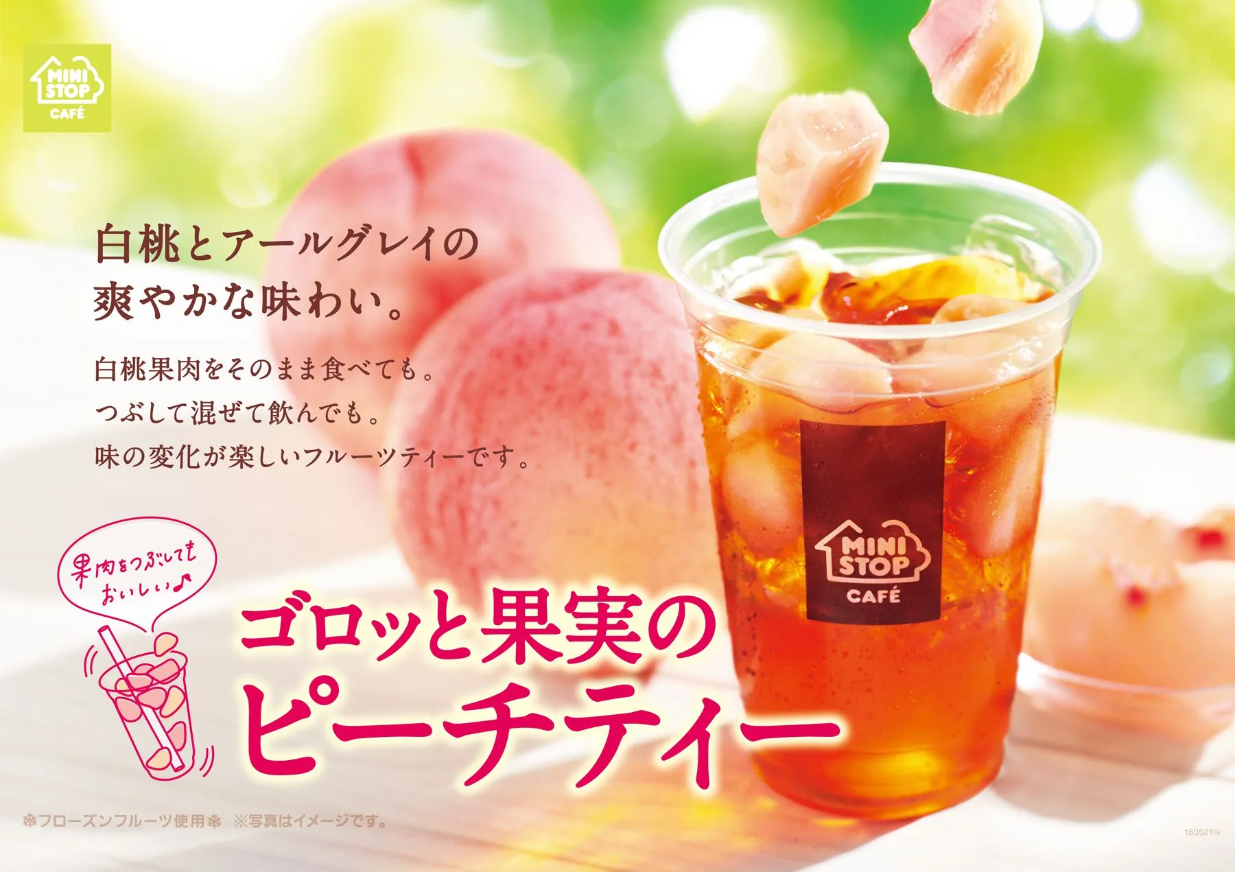 ミニストップ株式会社(本社:千葉県千葉市 代表取締役社長:藤本明裕、以下:ミニストップ)は、スイーツ感覚で楽しめるドリンク「ゴロッと果実のピーチティー(税込:290円)」を、2018年4月20日(金)より、国内のミニストップ