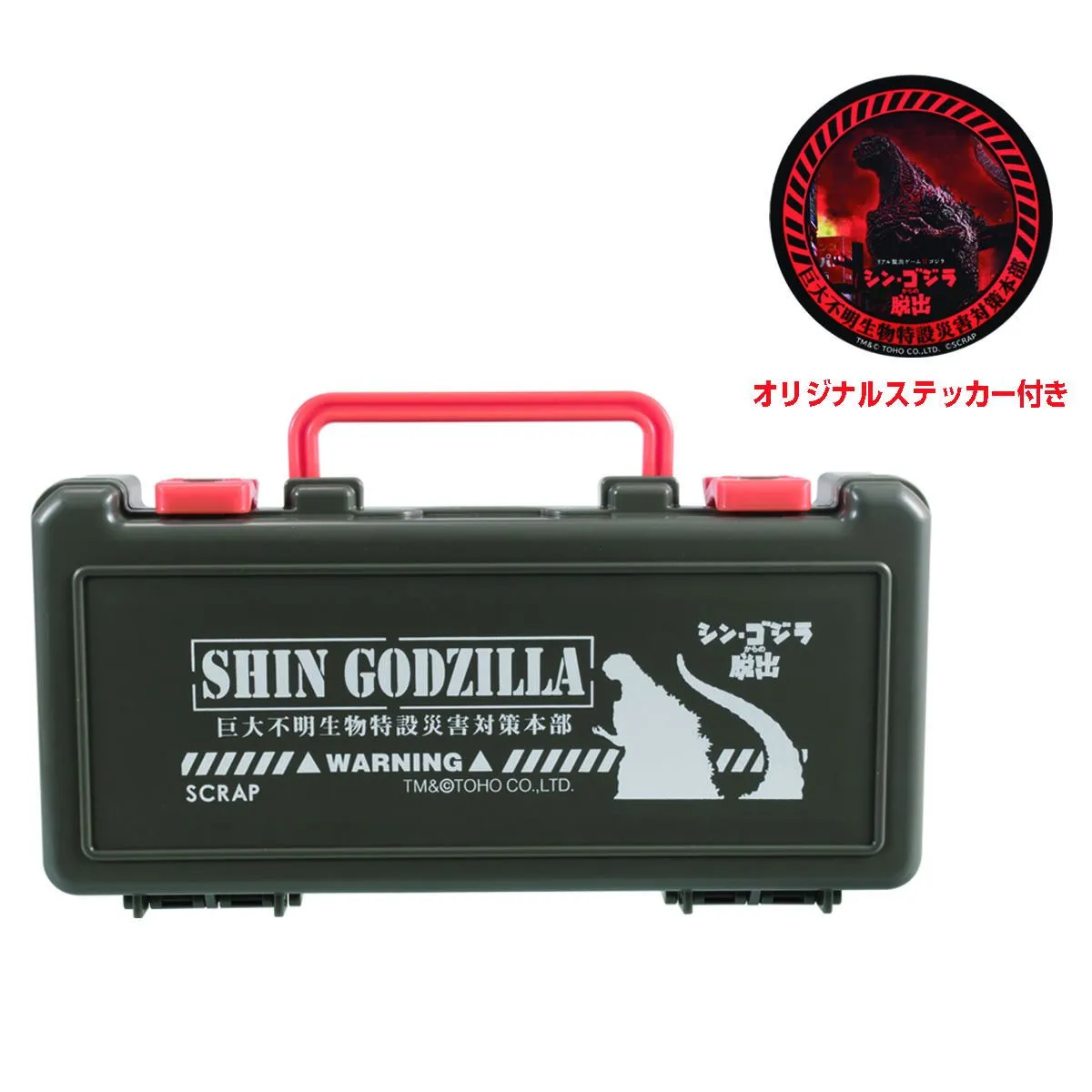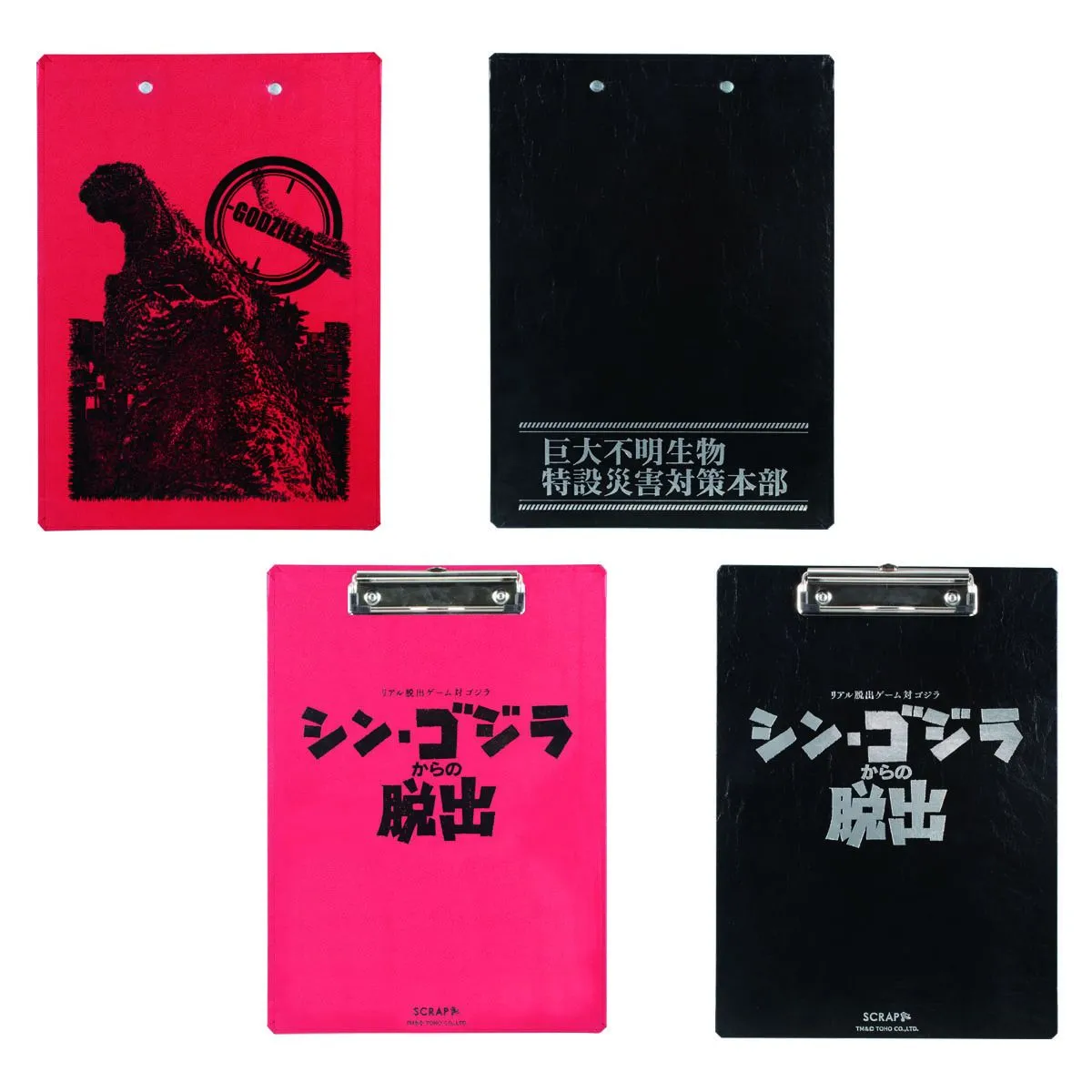 オリジナルグッズは、リアル脱出ゲームではお馴染みの「クリップボード」や「脱出成功・失敗ステッカー」をはじめ、数量限定の「ツールボックス」、新たな謎解きアイテムとして大注目の「謎缶」、ゴジラの第2形態を可愛くデザインした「アクリルキーホルダー」など、バラエティに富んだ全7品。