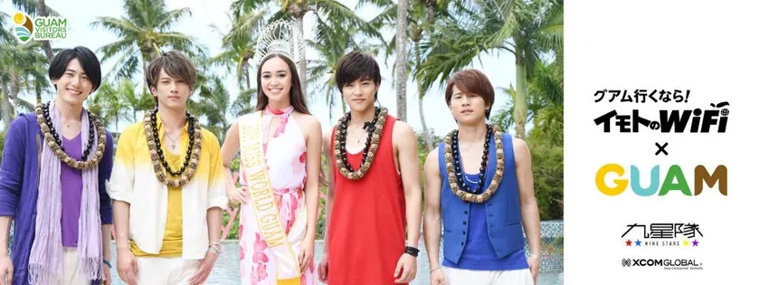 九星隊(ナインスターズ)がCMキャラクターを務める「イモトのWiFi」第2弾CM“グアム編”は、福岡県、熊本県、大分県、山口県のほか、『世界さまぁ~リゾート』(TBS系)など全国ネットでの放映も予定されています。