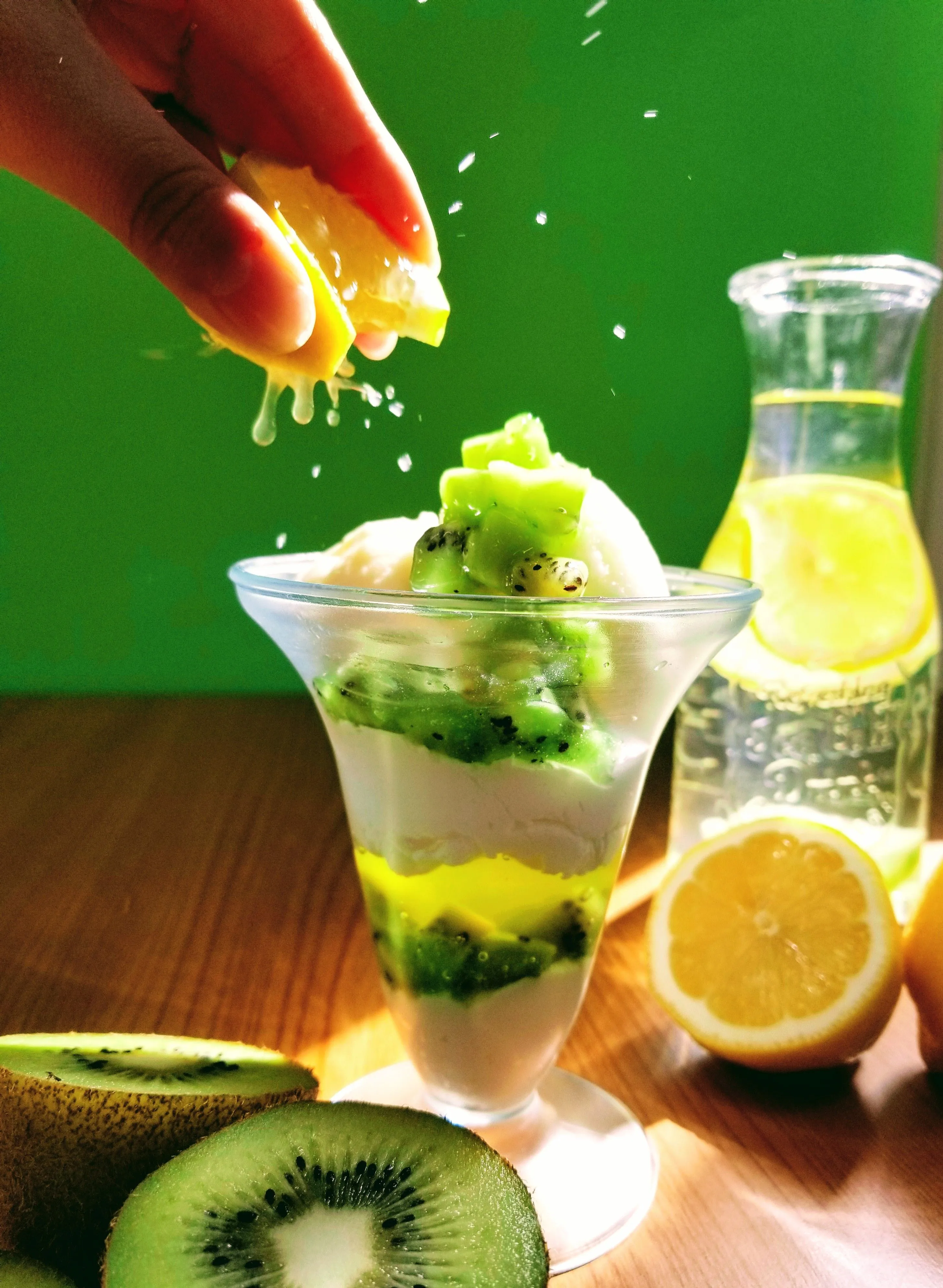 『スシローカフェ部』から 目にも爽やかな“甘すっぱ”スイーツが新登場! レモン×キウイのビタミンカラーパフェ! 『レモンキウイパフェ』 280円(+税)