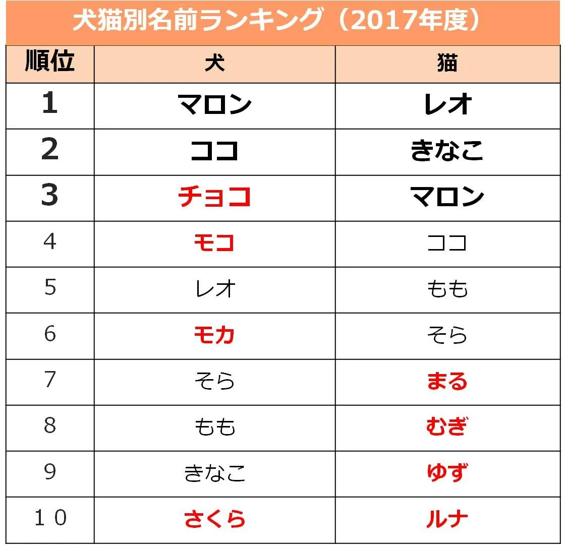 アイペット損害保険株式会社(本社:東京都港区、代表取締役:山村鉄平)は、2017年4月1日~2018年3月31日に当社のペット保険にお申し込みいただいたペットの名前の集計を行いました。その結果、2017年度は犬は「マロン」、猫は「レオ」が1位となりました。