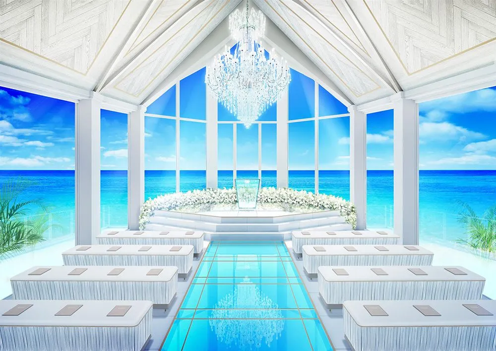 まるで海に浮かんでいるような特別な世界観で、打ち寄せる波とクリスタルの輝きに包まれながら、永遠の愛を誓う、ここでしか体験することのできない唯一無二の贅沢なウエディングが実現します。