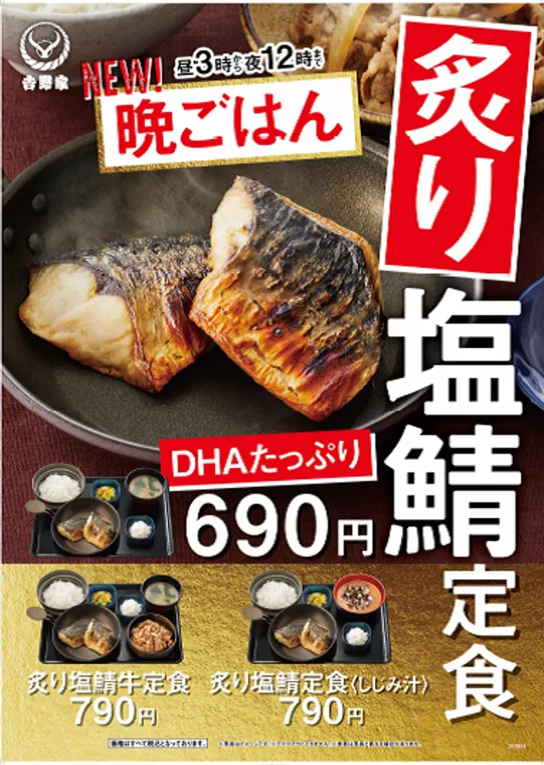 今回販売する「炙り塩鯖定食」は、夕食限定吉野家の『晩ごはん』の新商品となります。