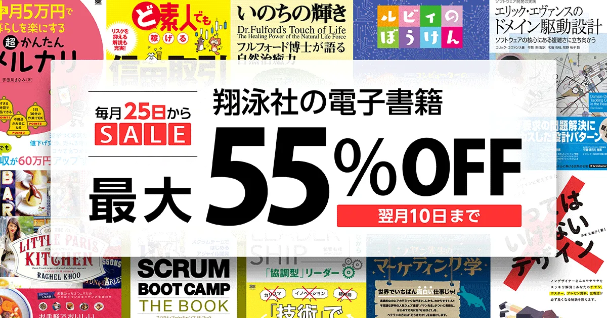 株式会社翔泳社(本社:東京都新宿区舟町5、社長:佐々木幹夫)は、学生や社会人の読書を活性化すべく、毎月25日から翌月10日まで電子書籍(Kindle本)が大幅割引となる「翔泳社25日セール」を開催いたします。