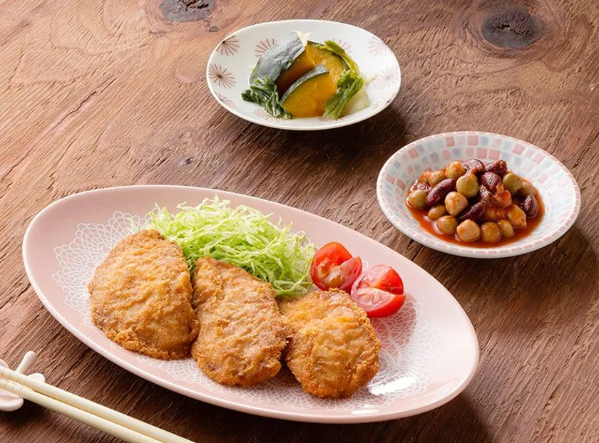 4月30日(月)より新たに取り扱う石見ポークの一口カツはもも肉を使用しており、冷めてもやわらかい肉質が特徴です。パン粉は中目を使用しており、サクサクとした軽やかな食感に仕上げています。
