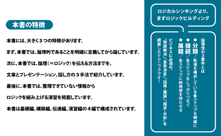 【論理を積み上げ、伝える】=【論理の筋道を理路整然と示してわかりやすく示す技術】 が身につく本。