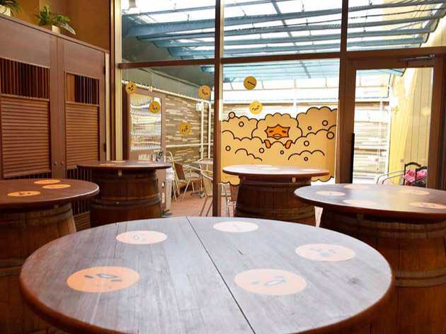 コラボ期間中、レストランでぐでたまのコラボメニューを5種類販売。コラボメニューをご注文の方にはコラボ限定オリジナルコースターをプレゼントします。(全6種類)