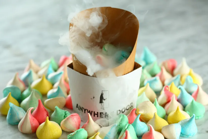 「ドコデモドア」の名前の通り世界と日本をつなぐ扉がコンセプトのAnywhere Doorが今回提供するのは、ロサンゼルスで人気の冷たいデザート。瞬間冷凍させたシリアルを食べるとドラゴンのように白い息が出ると話題になっています。Anywhere Doorではシリアルのかわりにメレンゲキスを使用し、さらに可愛いデザートに仕上げました。