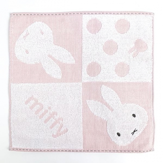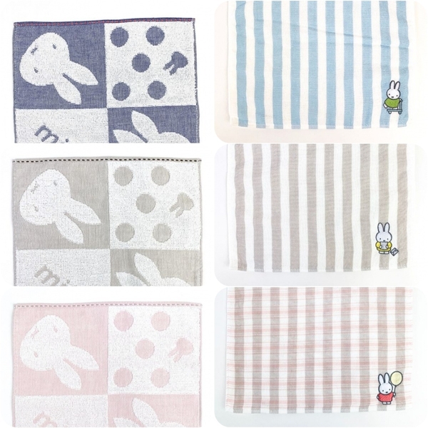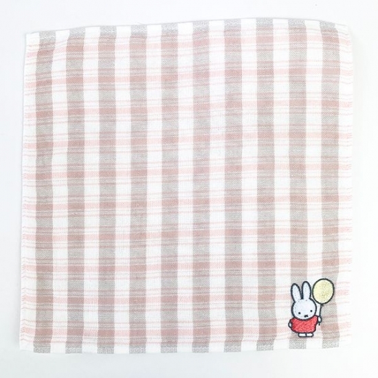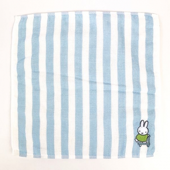 ボーダー柄の生地にかわいいミッフィーの刺繍が施されているタオルです。