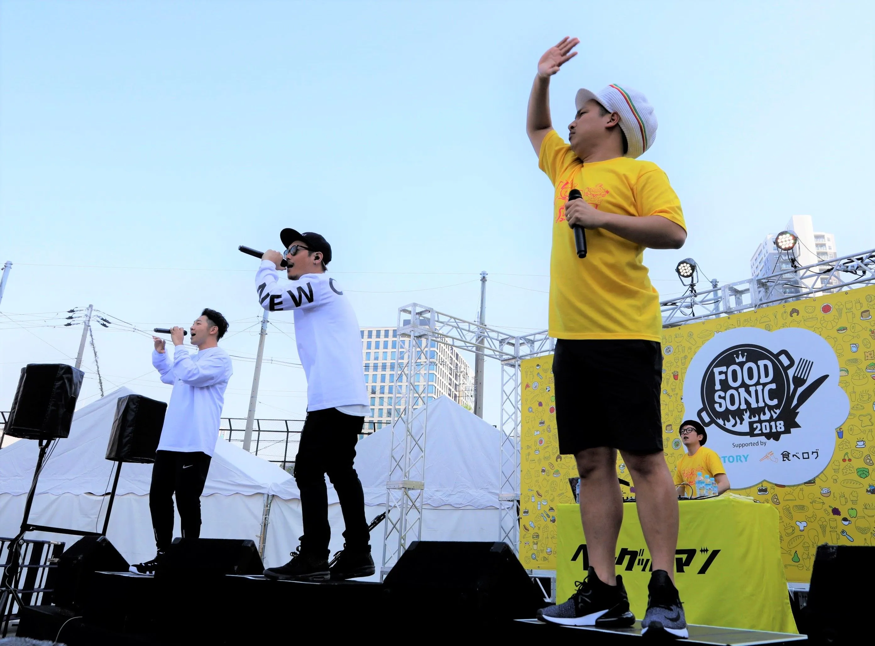 4月28日の初日には会場からABCテレビ特別番組「千原ジュニアの輝け!KANSAI美味いもんアワード2018」の生中継を実施しました。その生中継内で、ベリーグッドマンが現在ABCテレビで展開中の「ABCフード&スマイルフェス」のテーマ曲「友達の歌」などをステージで披露し、来場者とともに盛り上がりました。