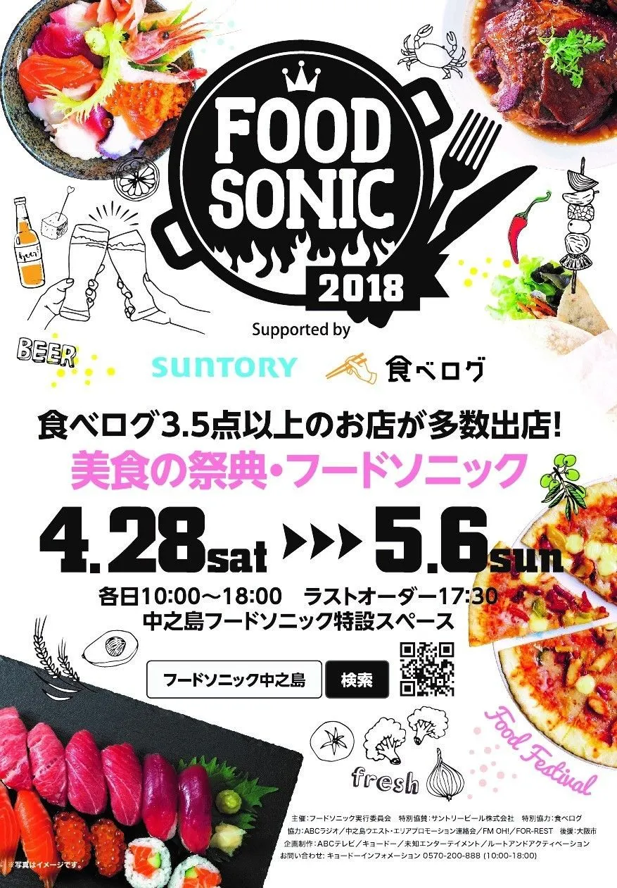 2018年4月28日(土)~5月6日(日) @ 中之島フードソニック特設スペース 関西の話題店、スペシャルメニュー、ABCコラボメニューが見逃せない