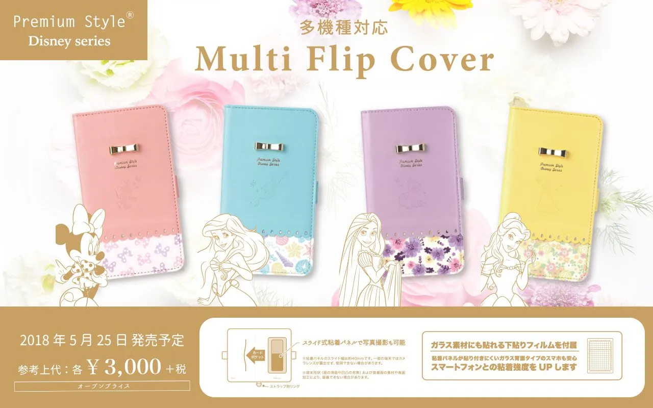 携帯電話やデジタルオーディオ端末等のアクセサリーの商品を企画・製造・販売を手掛ける株式会社PGA(本社:横浜市都筑区、代表取締役:黒木 光)は、「Premium Style Disney series」ブランドから「多機種対応マルチフリップカバー」シリーズの4種類を2018年5月25日より発売致します。全国の家電量販店・または弊社直販サイトにてお買い求めください。