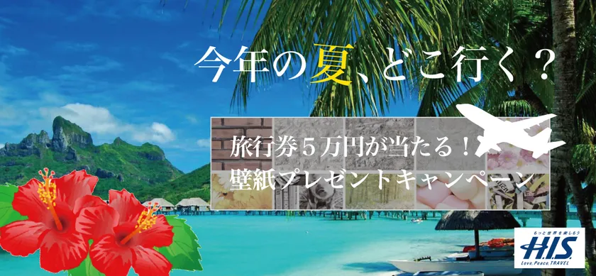 H.I.S.旅行券5万円分が当たる!賃貸情報サイト『ウチコミ!』で 『旅行券が当たる!壁紙プレゼントキャンペーン』を実施