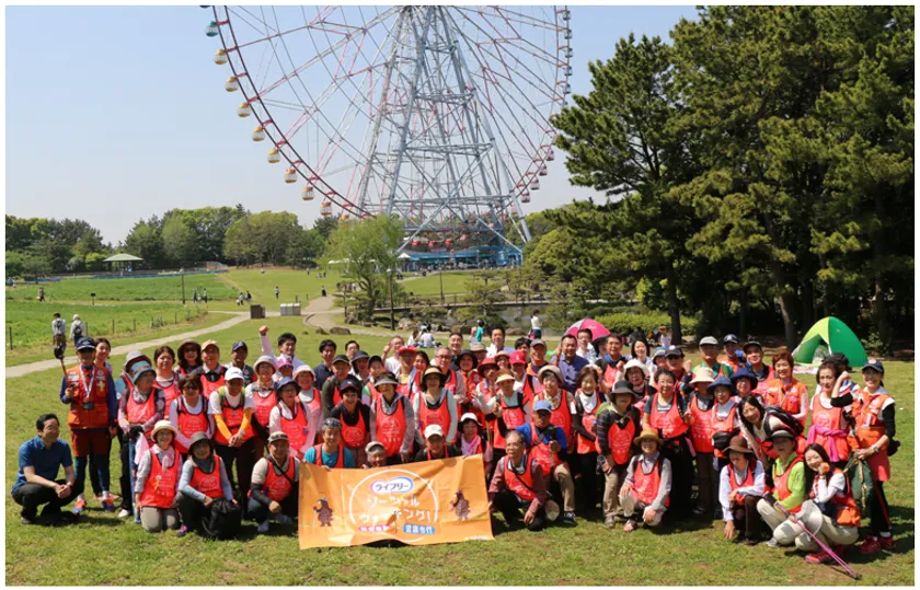 体験会に約60人参加、 「認知症予防に家族や友人との外出が効果的」を体感 第5回 ライフリー『ソーシャル・ウォーキング(R)』を東京で開催 (2018年4月 於 葛西臨海公園・葛西海浜公園)