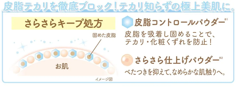 <特長1>皮脂テカリを徹底ブロック!テカリ知らずの極上肌に導く「さらさらキープ処方」