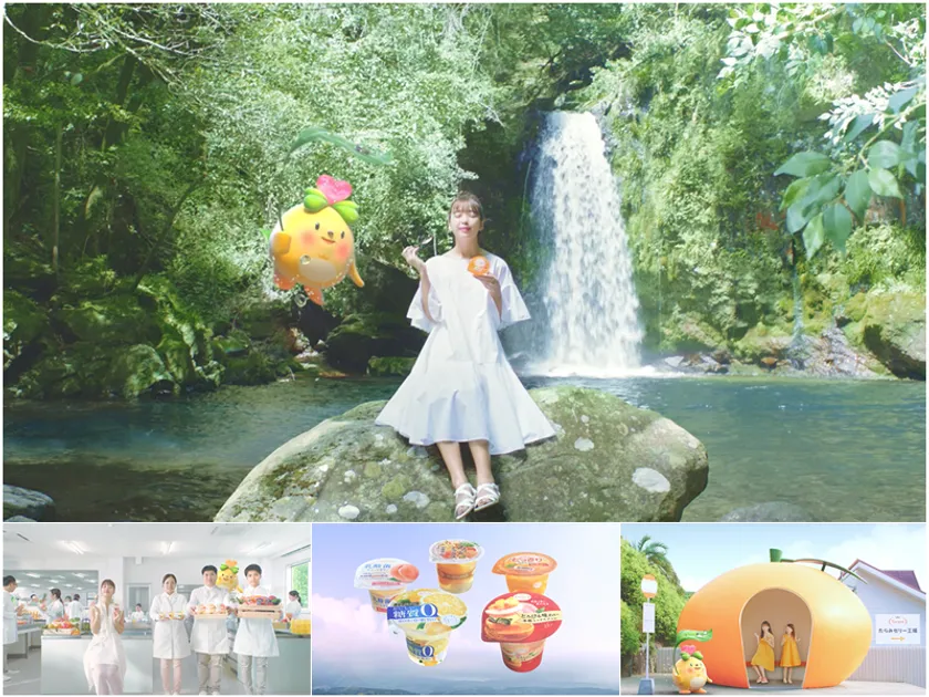 TVCMでは、藤田ニコルさんを中心に、名水百選にも選ばれた長崎県轟峡の大自然、同社開発室、実在するフルーツバス停、ゼリーの妖精「たらみちゃん」を共演させながら、たらみゼリーの美味しさのルーツが描かれています。