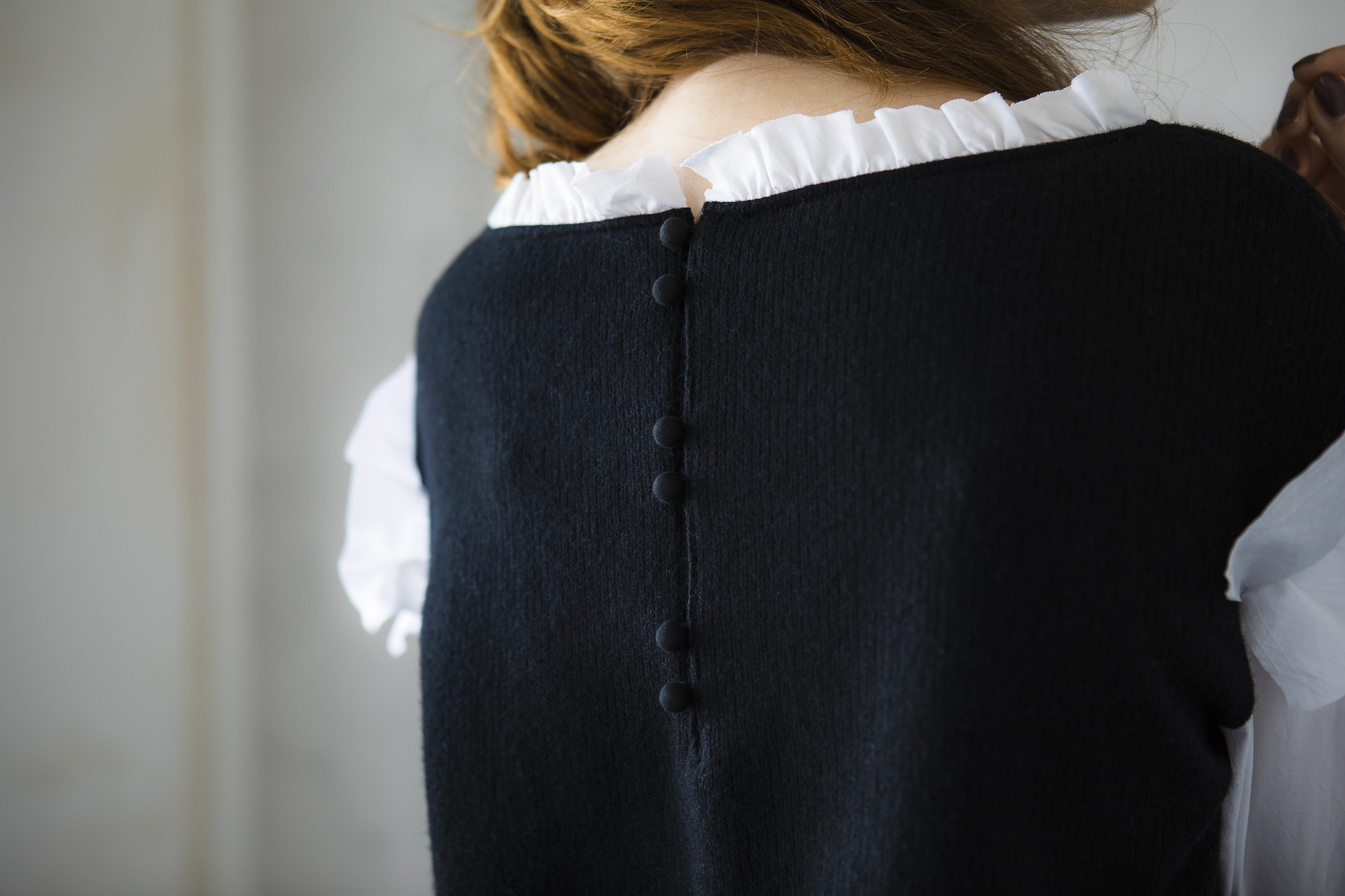 デビューコレクションの一つは、ウールの産地で有名な尾州の機屋の方と共にオリジナルジャガードを織り上げました。