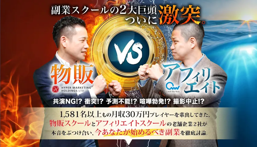 これまではCatch the Webであればアフィリエイトを、ハイパーマーケティングホールディングスであれば物販を教え続けてきました。しかしそこには「実践者にとって本当に向いている手法なのか?」という検討がされていなかったのが実態です。そこで『副業革命』ではアフィリエイトと物販、それぞれの実践者も交えながら、メリットやデメリットを議論し、どちらが自分に向いているのかを判断していただくための機会を提供いたします。さらに自身に合った副業を知ったあとには、具体的な手法までご案内させていただく予定です。