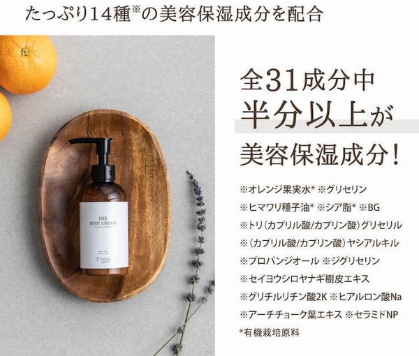 また、天然由来成分100%や、11の無添加で、ボディだけでなく、顔にも使用可能な本格オーガニックボディクリームです。