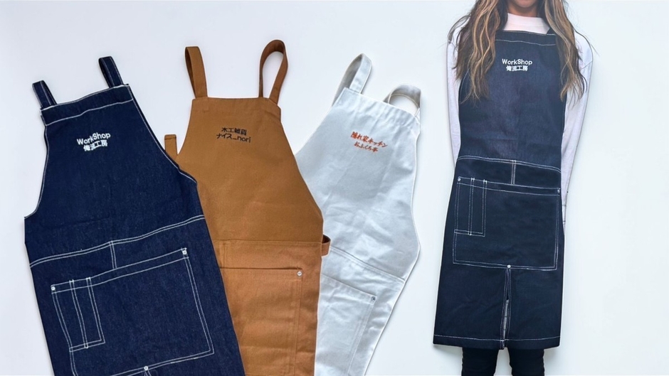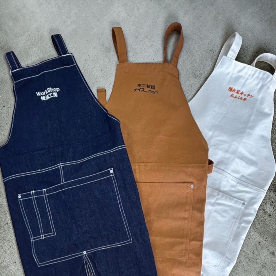 カフェや作業用、DIYにも使いやすい、実用性とデザイン性を兼ね備えたオリジナル名入れエプロン